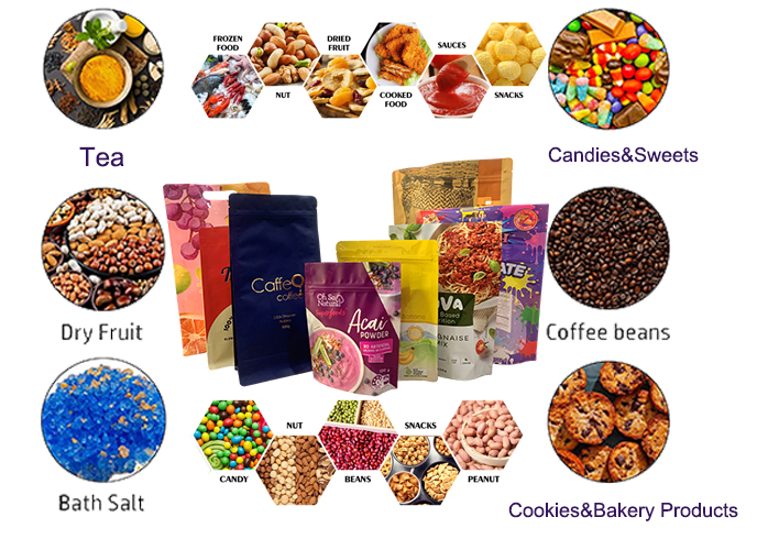 • Упаковка пищевых добавок. Подъемные пакеты обеспечивают безопасность упаковки здоровой пищи, такой как добавки, протеиновый порошок. Длительный срок хранения и защита питательных веществ.